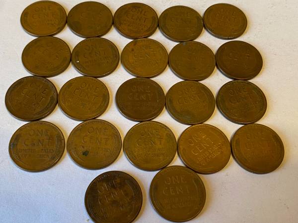 22-1955 S Mint Wheat pennies $2.50 for all, cash only, local pickup only. The coins are in circulated condition, see photos.